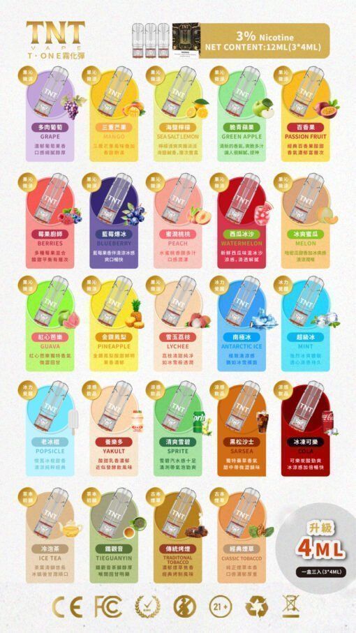 在口味分類上,常見煙彈大致可分為幾個方向: