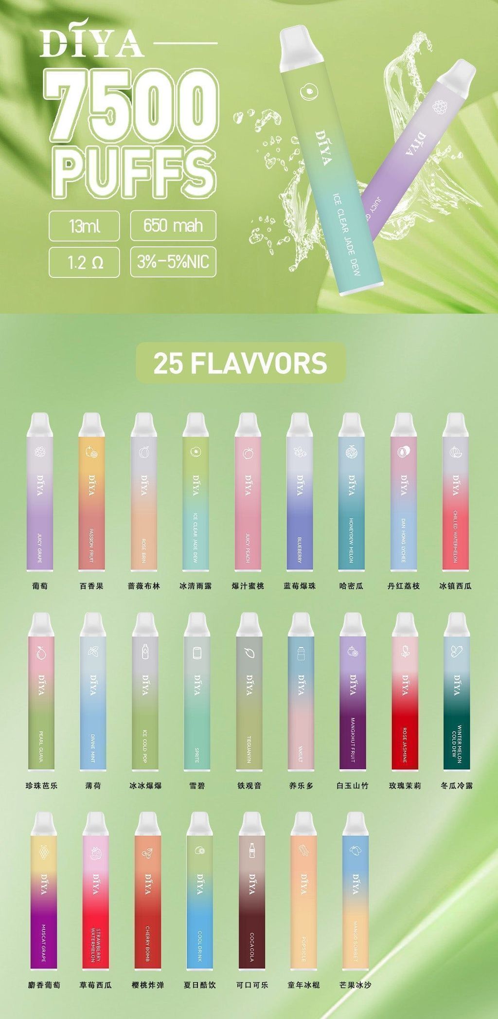 DIYA 7500口拋棄式電子煙 台灣電子煙推薦 可充電續航可控 輕量穩定日用設備